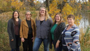 (Staff members from left to right: Sarah Skinner, Catherine Peirce, Kiara Abma, Susanna Bruneau, and Sheila Logelin)