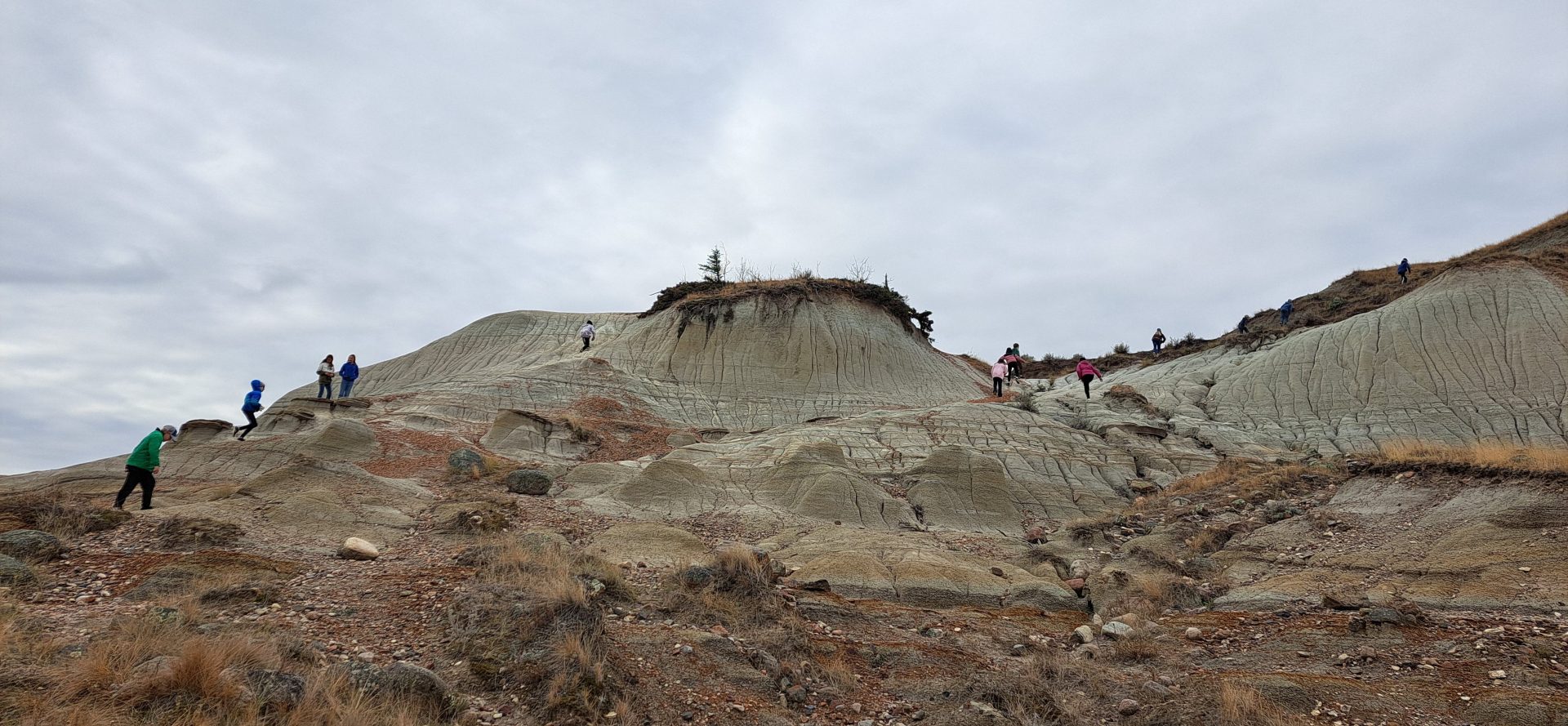 Big Knife Provincial Park is an ideal location, and the BRWA has expertly utilized the area when designing the Habitat Tour to create a field trip of high educational value and enjoyment. The Habitat Tour is a guided hike through the park with a total of 5 stops. Each stop occurs at a microhabitat, the stops being aspen forest, coniferous forest, wetlands/freshwater, grasslands, and hoodoos. Grade 6 curriculum links are found throughout the whole tour. This is evident in the intentional discussions and observations of biodiversity within each microhabitat, recognizing invasive/non-native species, and considering the environmental impacts of human activity. Though the outlined talking points of the tour are based on Grade 6 curriculum, the students are also encouraged to ask their own questions and respectfully explore the environment through personal observation. Learning curriculum content is a key component of the tour, but learning new skills is also deeply incorporated into the goals of the program. Students learn how to use binoculars and spot signs of animals, amongst others. Another major aspect of the tour is hands-on activities which combine practicing new skills and learning the course content. The transect squares is a great example of this, where students investigate a small area and search for as many different species as possible. Invasive species tag also demonstrates the tour’s emphasis of both fun and learning by demonstrating the relationship between native and invasive species through an engaging and memorable experience. The Habitat Tour is where the classroom is taken outdoors and engages students through exploration, teaching, and activities.
