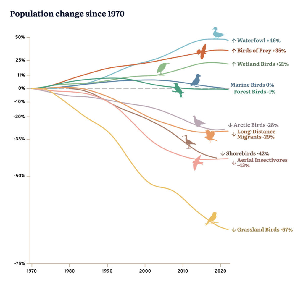 The 2024 State of Canada’s Birds Report shows the drastic decrease in grassland birds species across Canada. The health of bird populations is often shaped by habitat loss and fragmentation impacting biodiversity. Within our watersheds, areas like Canadian Forces Base Wainwright, Pigeon Lake Provincial Park, and certain riparian zones along the Battle River show strong biodiversity, while others require further conservation efforts.