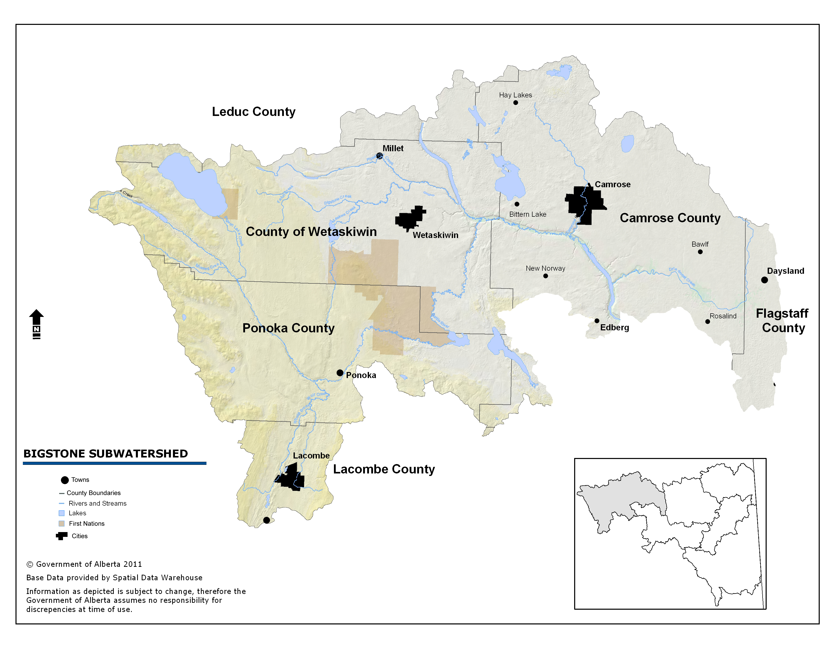 Bigstone is the western-most subwatershed of the Battle River watershed. It is home to Battle Lake (headwaters of the Battle River) and the Maskwacis Cree Nations, and is located within the Central Mixedwood, Dry Mixedwood and Central Parkland natural subregions.